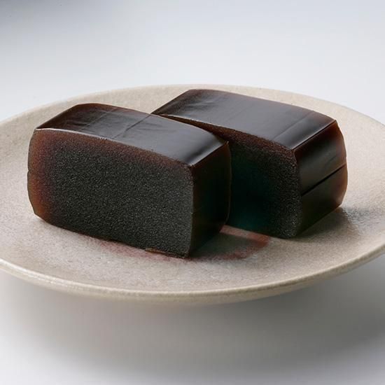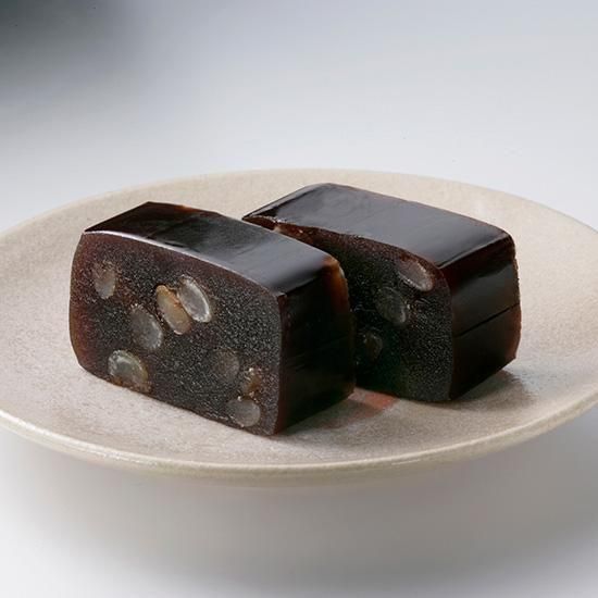 つややかな色をまとう黒糖羊羹。黒ねりはなめらかできめ細やかな舌ざわり。大夜は白小豆が入っています。